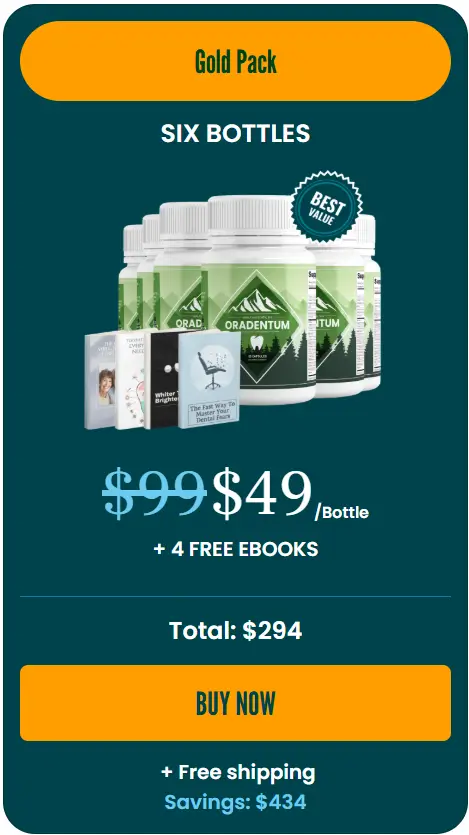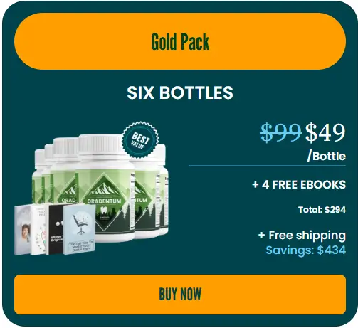 • 6X Oradentum bottles for $294 + free shipping to the US (with 4 free bonuses).