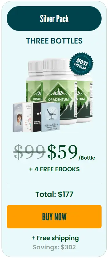 • 3X Oradentum bottles for $177 + free shipping to the US (with 4 free bonuses).